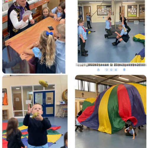 The class have already settled in well and really enjoyed our circus themed discovery point. Here's some photos of them enjoying some juggling, magic and of course...popcorn!